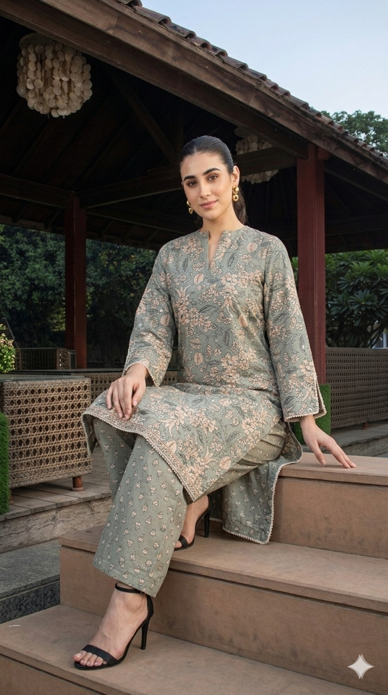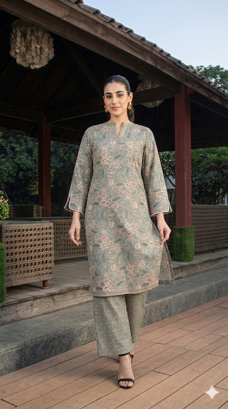 Step into graceful elegance with our Sage Green Floral Printed Kurti Set, designed to offer a perfect blend of tradition and modern style. Featuring a soothing sage green base with intricate floral patterns, this outfit exudes a soft and sophisticated charm.